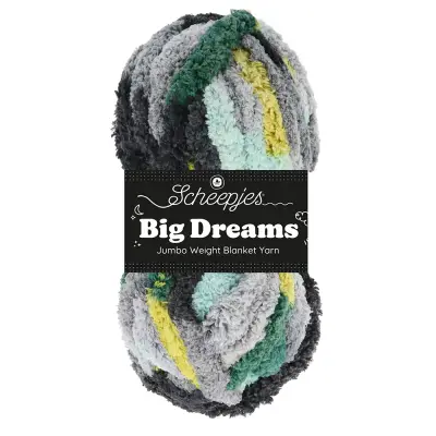 Scheepjes Big Dreams nodigt je uit om groter te dromen! Met dit heerlijk zachte en dikke garen maak je grote dekens en kussens om in weg te zakken. De unikleuren en meerkleurige varianten zijn perfect op elkaar afgestemd en gemakkelijk te combineren. Het superdikke garen geeft snel resultaat. Scheepjes Big Dreams is ideaal voor beginners, maar ook gevorderde crafters zullen de zachtheid en sprekende kleuren kunnen waarderen. Het garen is gemaakt van volledig gerecycled materiaal en is dus ook nog eens een bewuste en milieuvriendelijke keuze.