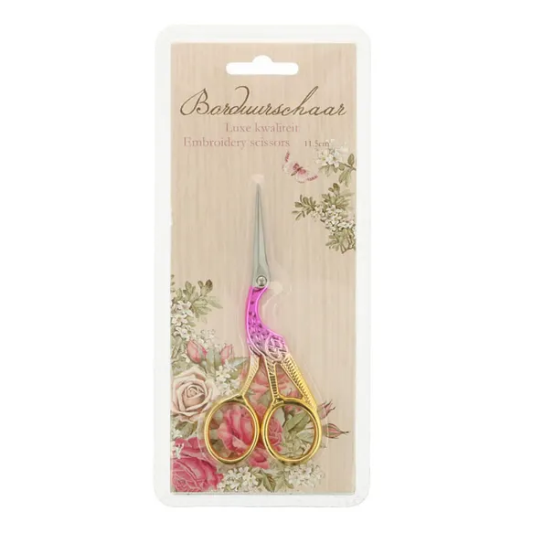 Dit sierlijke ooievaarschaartje van Opry mag in de naaimand beslist niet ontbreken. Dit klassieke model borduurschaartje heeft zeer scherpe bladen en is dankzij de fijne punten uiterst geschikt voor het afknippen van borduurgaren dicht op de stof.