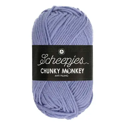 Chunky Monkey is een superzacht acrylgaren met een dikke, volumineuze structuur. Dankzij de anti-pilling technologie blijft je haak- of breiproject langer mooi, zonder pluizen! Ideaal voor warme truien, dekens en accessoires die tegen een stootje moeten kunnen.