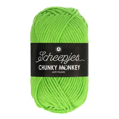 Chunky Monkey is een superzacht acrylgaren met een dikke, volumineuze structuur. Dankzij de anti-pilling technologie blijft je haak- of breiproject langer mooi, zonder pluizen! Ideaal voor warme truien, dekens en accessoires die tegen een stootje moeten kunnen.