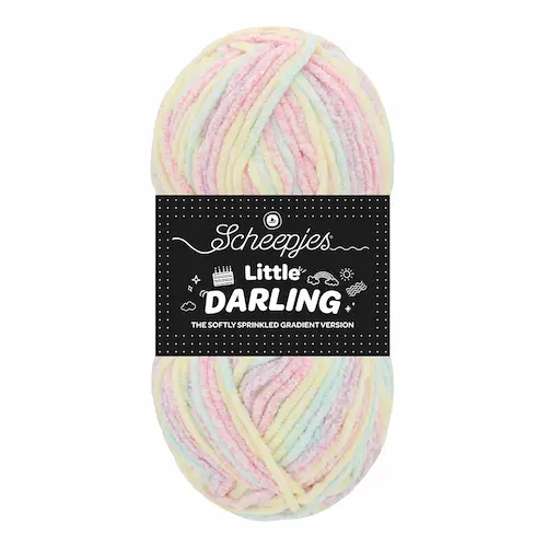 Scheepjes Little Darling Sprinkled Gradient laat je bij elke steek versteld staan van de prachtige kleurovergangen. Net als zustergaren Little Darling is dit een DK weight garen dat fluweelzacht en knuffelig aanvoelt. Wat dit garen bijzonder maakt, is dat het gespikkelde gedeelten bevat die zorgen voor een gestreept, schilderachtig effect, zonder dat je van garen hoeft te wisselen. Het zachte, maar stevige garen is prettig om mee te werken, zorgt voor een prachtige stekendefinitie en is gemakkelijk in onderhoud. Dit maakt het zeer geschikt voor amigurumi, babydekens, gebreid speelgoed en projecten met reliëf.