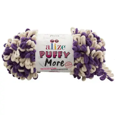 Alize Puffy More is een breigaren met kant-en-klare dunne lusjes in 2 kleuren. Geen naalden nodig!
