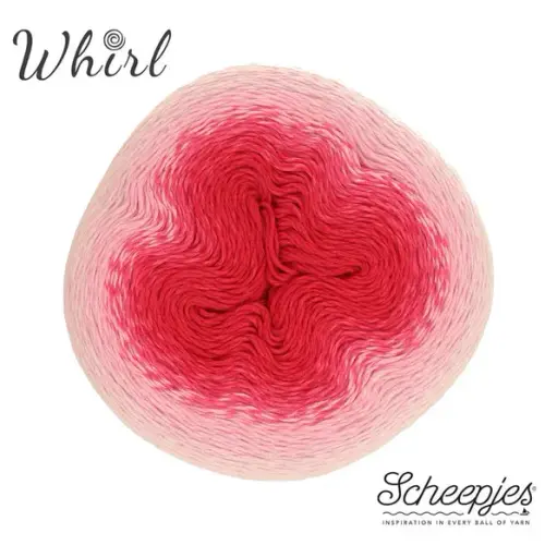 Het assortiment van Scheepjes Whirl biedt een enorme keus aan prachtige gemêleerde garens met een mooi en lang kleurverloop. Het garen is gemaakt van 60% katoen en 40% acryl en is daardoor uitermate geschikt voor het haken of breien van luchtige en lichtgewicht projecten die bijzonder mooi vallen. Scheepjes Whirl is een zogenaamd unicatgaren waarbij het kleurverloop per draad verspringt, wat uw brei- of haakwerk een uniek gemêleerd effect geeft. In tegenstelling tot andere unicatgarens is Whirl echter getwijnd en dat voorkomt dat het garen bij snel breien of haken splijt. Elke kleurwisseling is zorgvuldig met de hand geknoopt, zodat de knoopjes onopvallend wegvallen in de steken en het werk een mooie en gladde afwerking krijgt. De extra grote Scheepjes Whirl garencakes hebben een looplengte van maar liefst 1000 meter, ruim voldoende voor een grote sjaal of omslagdoek. Scheepjes Whirl is geschikt voor naalddikte 3.50-4.00mm (garendikte Fingering).