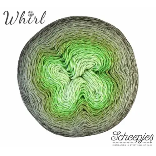 Het assortiment van Scheepjes Whirl biedt een enorme keus aan prachtige gemêleerde garens met een mooi en lang kleurverloop. Het garen is gemaakt van 60% katoen en 40% acryl en is daardoor uitermate geschikt voor het haken of breien van luchtige en lichtgewicht projecten die bijzonder mooi vallen. Scheepjes Whirl is een zogenaamd unicatgaren waarbij het kleurverloop per draad verspringt, wat uw brei- of haakwerk een uniek gemêleerd effect geeft. In tegenstelling tot andere unicatgarens is Whirl echter getwijnd en dat voorkomt dat het garen bij snel breien of haken splijt. Elke kleurwisseling is zorgvuldig met de hand geknoopt, zodat de knoopjes onopvallend wegvallen in de steken en het werk een mooie en gladde afwerking krijgt. De extra grote Scheepjes Whirl garencakes hebben een looplengte van maar liefst 1000 meter, ruim voldoende voor een grote sjaal of omslagdoek. Scheepjes Whirl is geschikt voor naalddikte 3.50-4.00mm (garendikte Fingering).