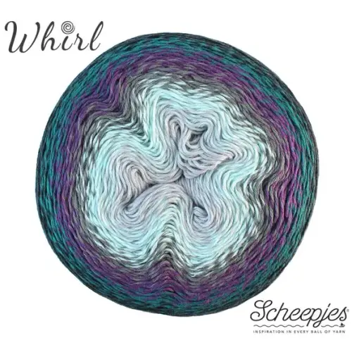 Het assortiment van Scheepjes Whirl biedt een enorme keus aan prachtige gemêleerde garens met een mooi en lang kleurverloop. Het garen is gemaakt van 60% katoen en 40% acryl en is daardoor uitermate geschikt voor het haken of breien van luchtige en lichtgewicht projecten die bijzonder mooi vallen. Scheepjes Whirl is een zogenaamd unicatgaren waarbij het kleurverloop per draad verspringt, wat uw brei- of haakwerk een uniek gemêleerd effect geeft. In tegenstelling tot andere unicatgarens is Whirl echter getwijnd en dat voorkomt dat het garen bij snel breien of haken splijt. Elke kleurwisseling is zorgvuldig met de hand geknoopt, zodat de knoopjes onopvallend wegvallen in de steken en het werk een mooie en gladde afwerking krijgt. De extra grote Scheepjes Whirl garencakes hebben een looplengte van maar liefst 1000 meter, ruim voldoende voor een grote sjaal of omslagdoek. Scheepjes Whirl is geschikt voor naalddikte 3.50-4.00mm (garendikte Fingering).