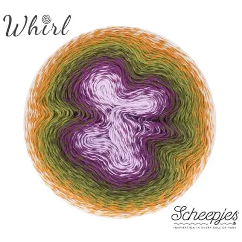 Het assortiment van Scheepjes Whirl biedt een enorme keus aan prachtige gemêleerde garens met een mooi en lang kleurverloop. Het garen is gemaakt van 60% katoen en 40% acryl en is daardoor uitermate geschikt voor het haken of breien van luchtige en lichtgewicht projecten die bijzonder mooi vallen. Scheepjes Whirl is een zogenaamd unicatgaren waarbij het kleurverloop per draad verspringt, wat uw brei- of haakwerk een uniek gemêleerd effect geeft. In tegenstelling tot andere unicatgarens is Whirl echter getwijnd en dat voorkomt dat het garen bij snel breien of haken splijt. Elke kleurwisseling is zorgvuldig met de hand geknoopt, zodat de knoopjes onopvallend wegvallen in de steken en het werk een mooie en gladde afwerking krijgt. De extra grote Scheepjes Whirl garencakes hebben een looplengte van maar liefst 1000 meter, ruim voldoende voor een grote sjaal of omslagdoek. Scheepjes Whirl is geschikt voor naalddikte 3.50-4.00mm (garendikte Fingering).